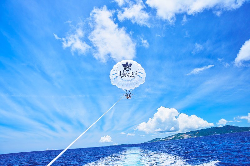 Enjoy a stroll through the sky with a breathtaking panorama of vibrant blue beneath you. Take off directly from the boat over the vast ocean of Onna Village, Okinawa, and return without getting wet, ensuring a comfortable and carefree experience. Suitable for guests aged three and above, this experience can be enjoyed by the whole family in the serene atmosphere unique to Halekulani Okinawa.
