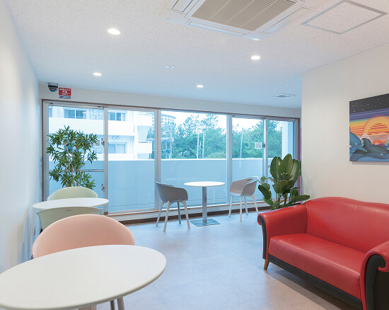 東江は、中途入社の方を対象とした社員寮です。ハレクラニ沖縄の中途社員は、一般的な会社員から消防士までさまざまなバックグラウンドを持っています。県外からの移住者も多く、沖縄県での生活に慣れた先輩たちにいつでも頼ることができます。スーパーマーケットやコンビニ、ビーチが近く、生活に必要な施設が揃っており、オフの時間で散歩に出かける人もいます。