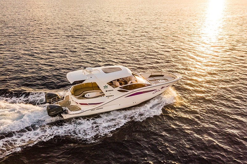 やんばるの山々を背にしながら、東シナ海に沈む夕日を独占する贅沢なひとときをハレクラニクルーザーで味わいませんか。夕陽が彼方の水平線に沈む様は、物悲しくも優美。刻々と幻想的に色彩を変える大海原と大空の神秘的な美しさは、言葉では表現しきれない感動をもたらします。船首と船尾に装備されたゆったりとくつろげるソファで、優雅で快適なサンセットタイムを存分にお楽しみください。