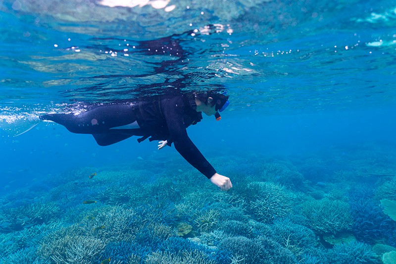 ハレクラニ沖縄周辺の海域は、有数のサンゴ礁域で、ホテル目の前の天然ビーチでは、多種多様なサンゴと色彩豊かな魚たちが訪れる人々を迎えてくれます。遊泳に自信がなくても、水難救助の資格を持ったガイドがサポートしますので、安心してお楽しみいただけます。