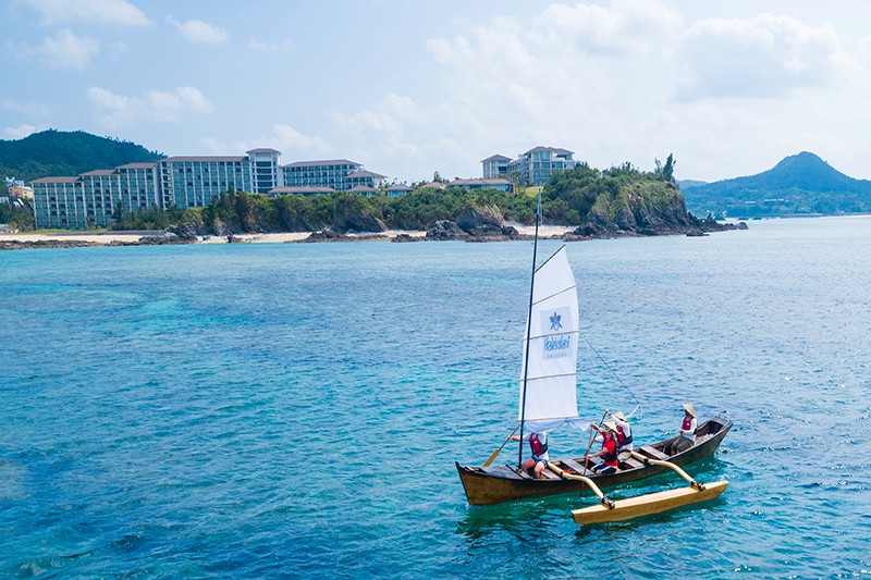 沖縄の魅力のひとつ、エメラルドグリーンの海。鮮やかな蒼空に包まれ、多彩な青の世界で贅沢で自由なリゾートライフをお楽しみください。ティーダ(太陽)が照らす水面は美しく輝き、ただ見ているだけで心が晴れやかになることでしょう。クルーザーもしくはカタマラン船でのご案内となります。