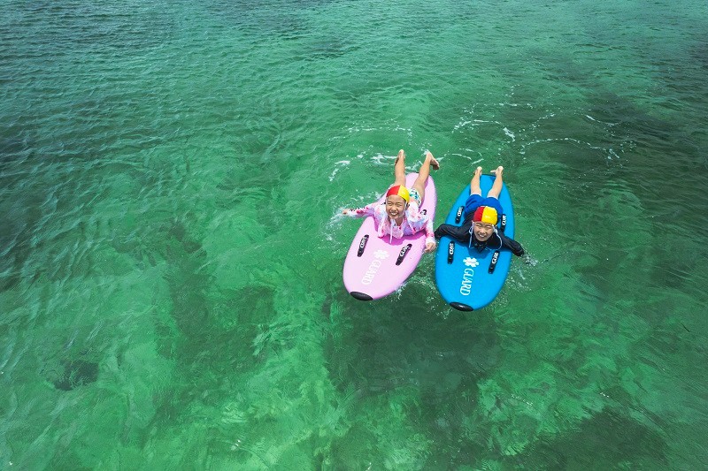エメラルドグリーンの海を贅沢に楽しめるウォータークルーズ。 フローティングマットの上でひなたぼっこされたり、海の中を観察されたり、思い思いの時間をお過ごしください。
