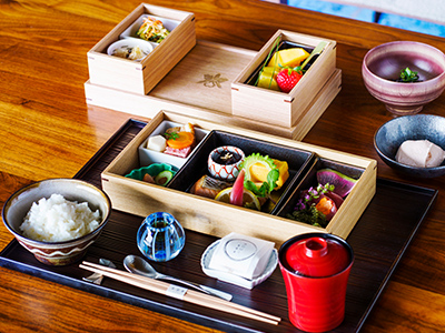 日本料理「青碧蒼」では、沖縄の食材や日本各地から取り寄せた旬な味覚を味わうことができる和朝食をご用意しています。