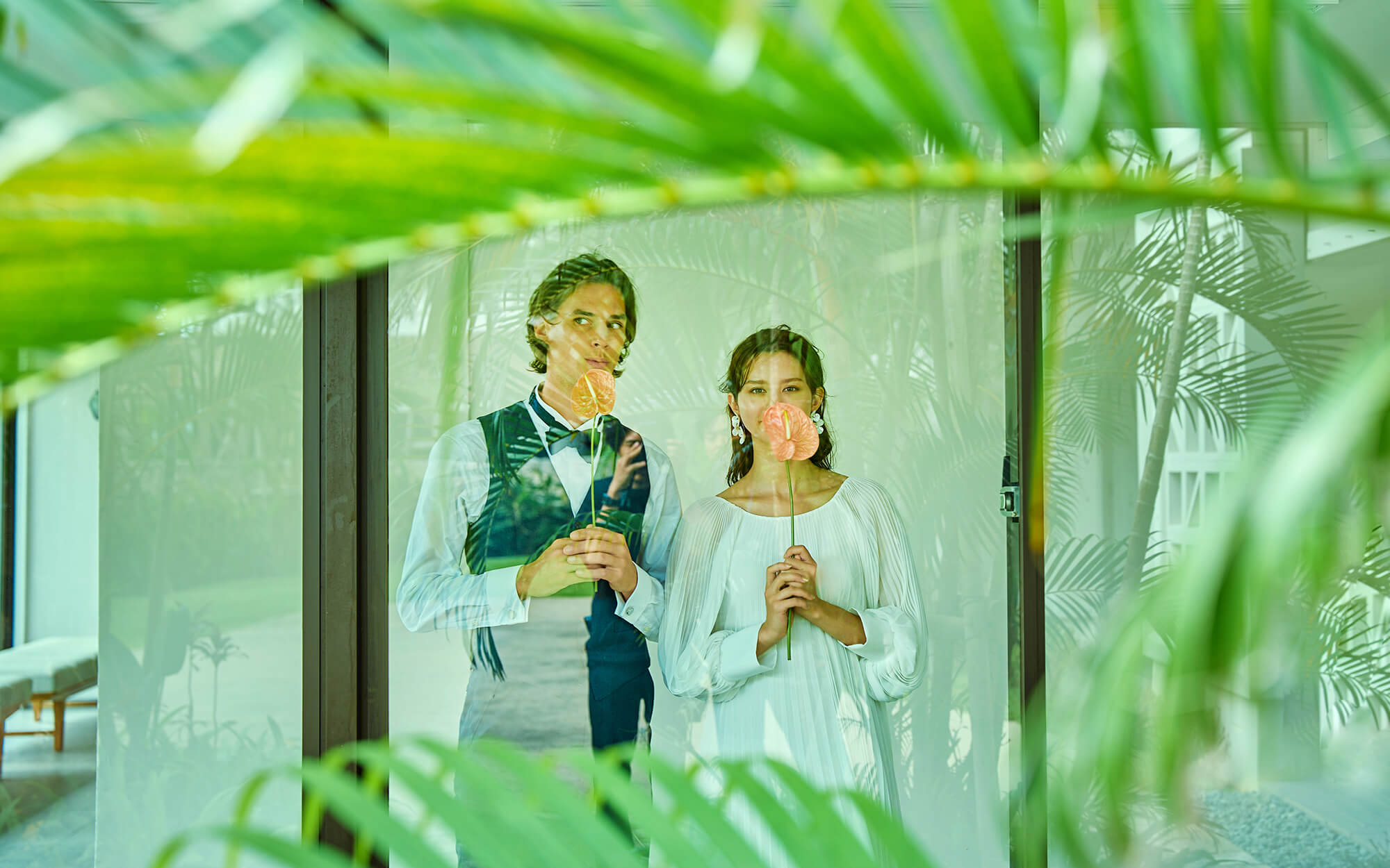 Stroll through verdant pathways at Halekulani Okinawa and let each step taken hand in hand become a cherished chapter in your unfolding love story.