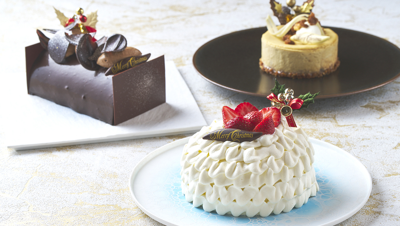 ハレクラニ沖縄オリジナルのショートケーキに加え、伊江島産黒糖と2種のチーズをブレンドして滑らかに焼き上げた黒糖チーズケーキ、軽やかなチョコレートムースに沖縄県産たんかんの香り漂うアールグレイムースを忍ばせたブッシュドノエルの、3種をご用意しました。