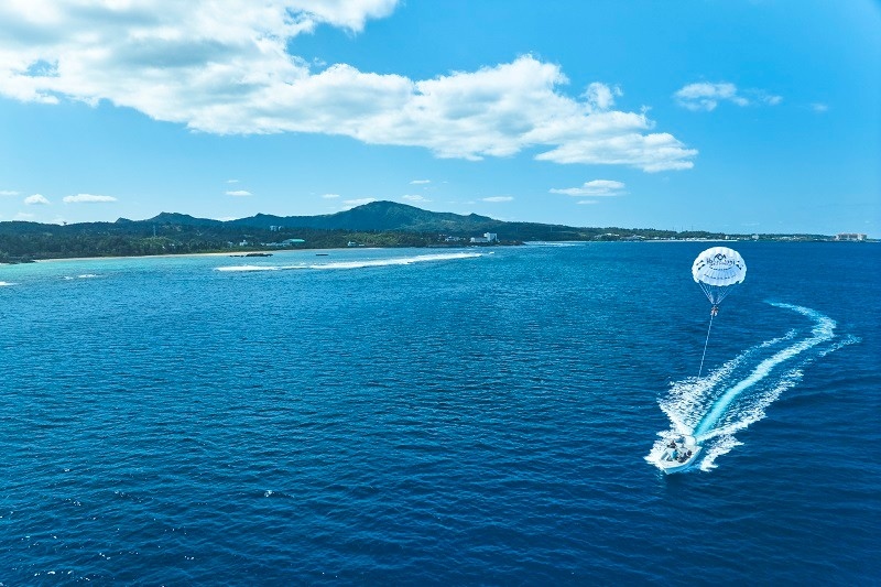 鮮やかなブルーの大パノラマを眼下に空中散歩が楽しめる「パラセーリング」が新登場。