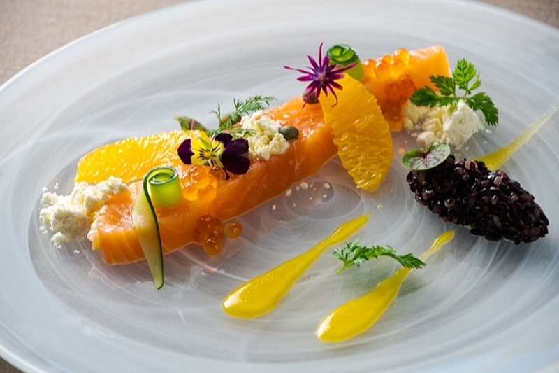 アトランティックサーモンのマリネ 黒米のサラダ添え タンカンのヴィネグレット