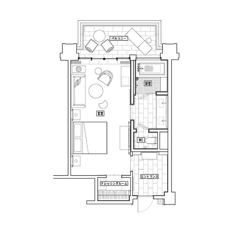 フロアプランはこの客室のカテゴリーの代表例であり、