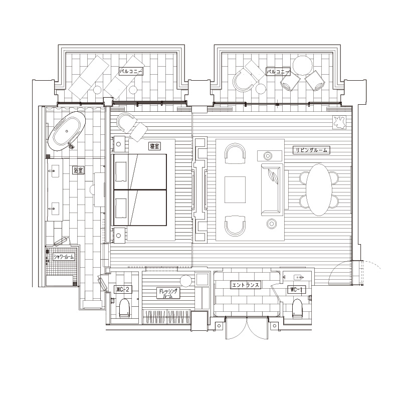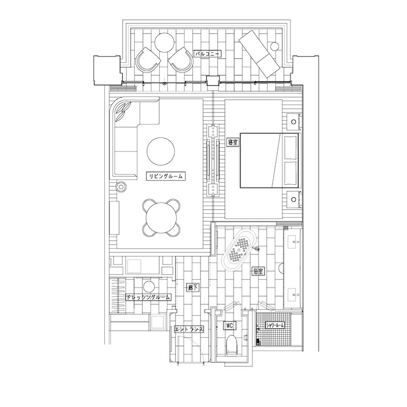 フロアプランはこの客室のカテゴリーの代表例であり、