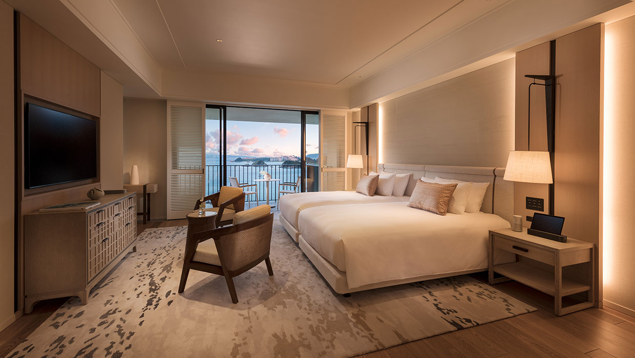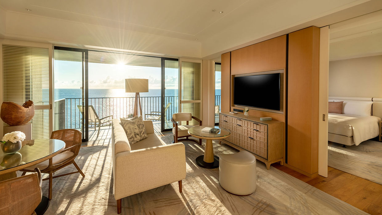 優美な静寂に包まれるサンセットウイングのエグゼクティブ オーシャン フロント スイートは、理想の休日を実現するサンクチュアリ。