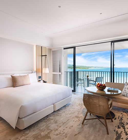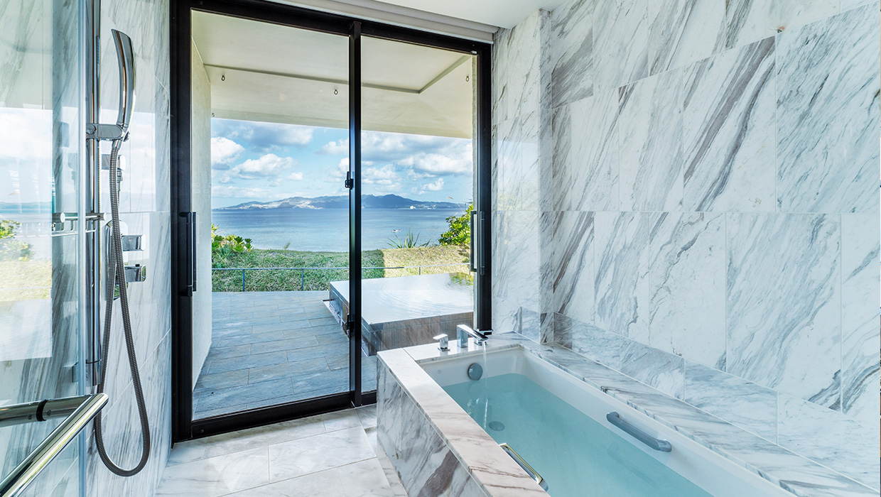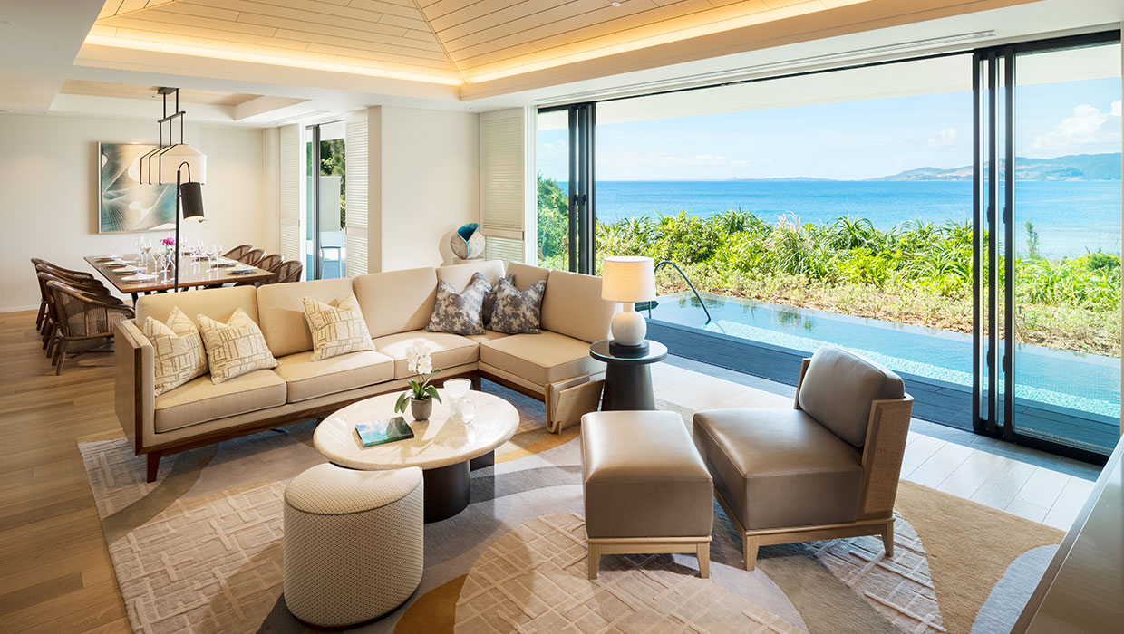 目の前に東シナ海の大海原が広がるハレクラニ クリフ ヴィラは、空の青と海の碧を壮大に見渡せるクリフトップに佇む特別な空間。