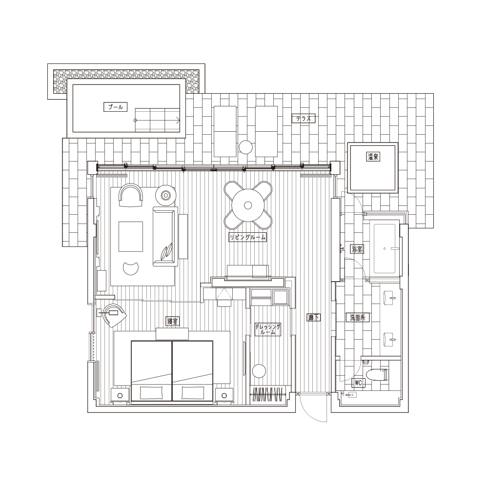 フロアプランはこの客室のカテゴリーの代表例であり、