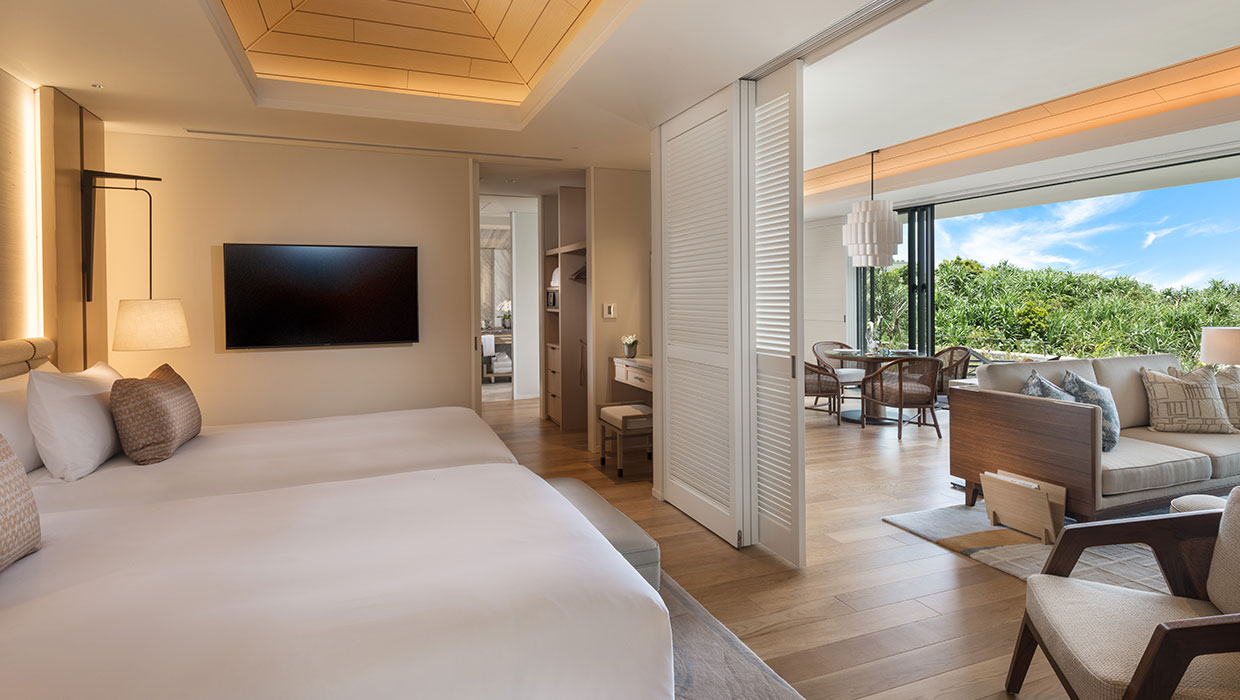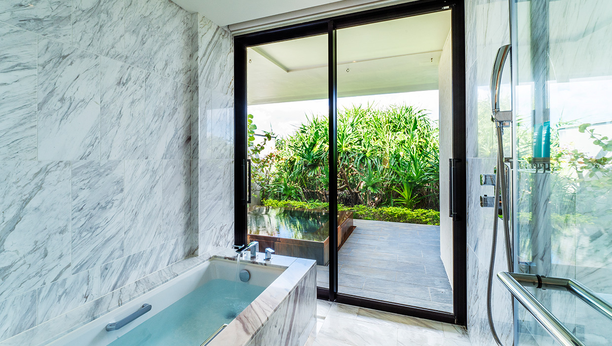 完全なプライバシーを確保する空間は、「ハレクラニ」が意味する「天国にふさわしい館」を正統に受け継ぎ、ゲストの滞在時間を理想的なものにいたします。それぞれのヴィラ内には、プライベートプールと、心身をゆったりと癒やす天然温泉をご用意しました。日常から解放される楽園リゾートの空気に包まれながらも、まるで我が家にいるかのようなくつろぎに満ちた休日をご満喫ください。