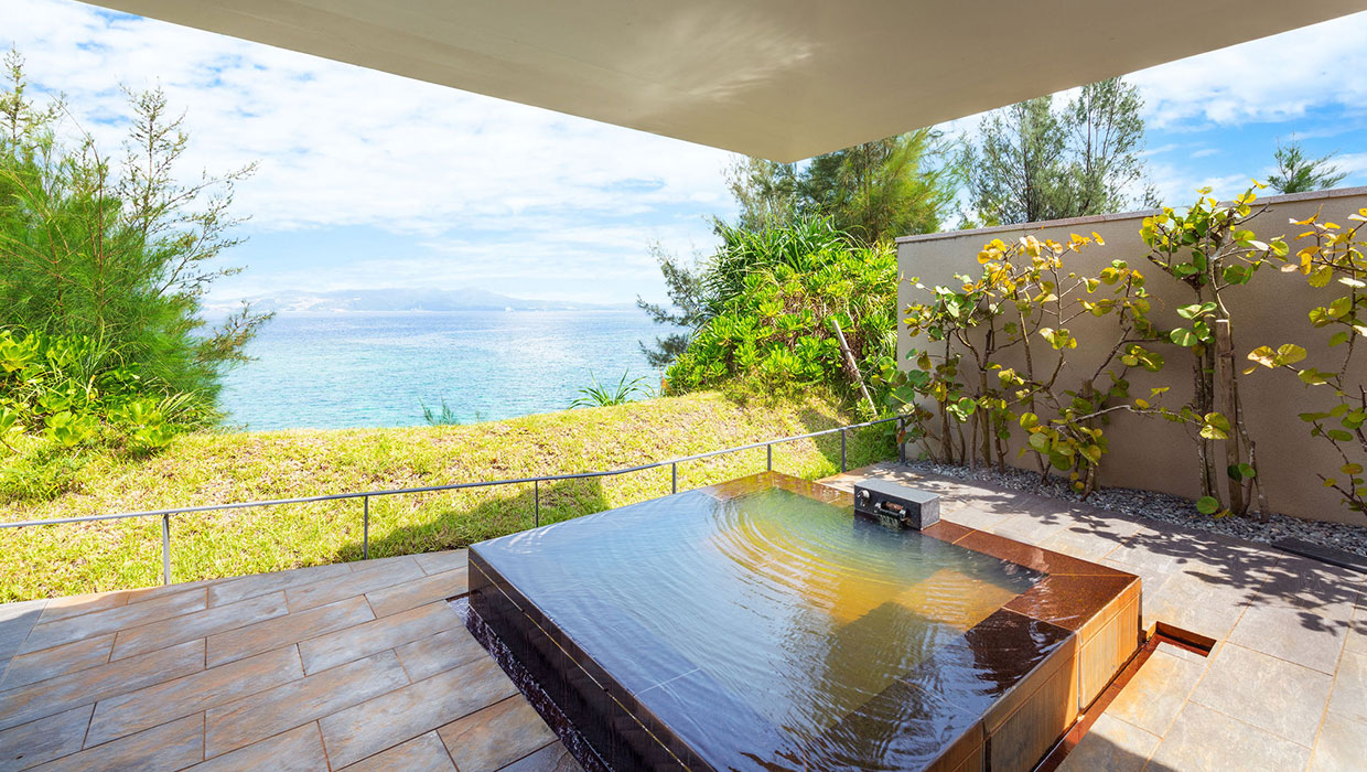 青い海が間近に広がるクリフトップには、プライベートプールと天然温泉を備えた5棟のヴィラがございます。