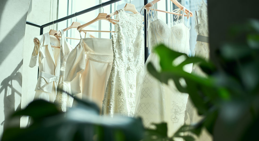 “鏡に映る自分を愛せるように”をコンセプトに、洗練されたデザインに魅了された著名人ファンを多く持つ、関東を拠点としたMIRROR MIRROR。“ドレスの美しさは細部に宿る”をコンセプトに、海外でセレクトしたインポートドレスやこだわりの旬なトレンドドレスが並ぶ関西を拠点としたDRESSMORE。衣装見学はウエディングサロンにて承ります。