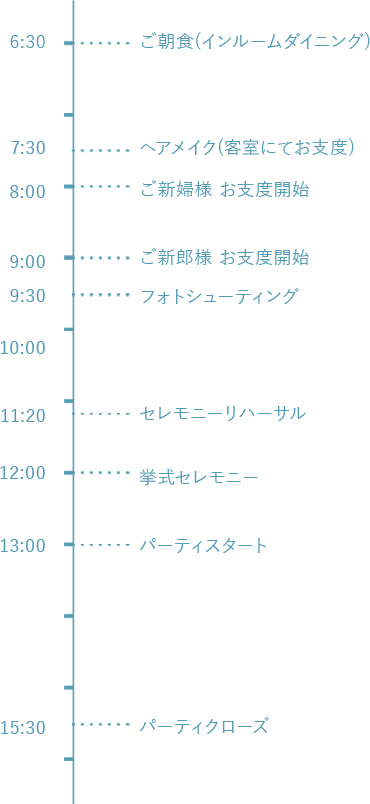 式当日の朝は移動することなくゆっくりとお支度できるよう、ご朝食の後にご宿泊のお部屋にてヘアメイクとドレスの着付けをいたします。スパハレクラニからはウエディングだけのスペシャルトリートメントをご用意いたしました。ビューティーケアやリラクゼーションなど、ご要望に合わせた施術をご堪能ください。